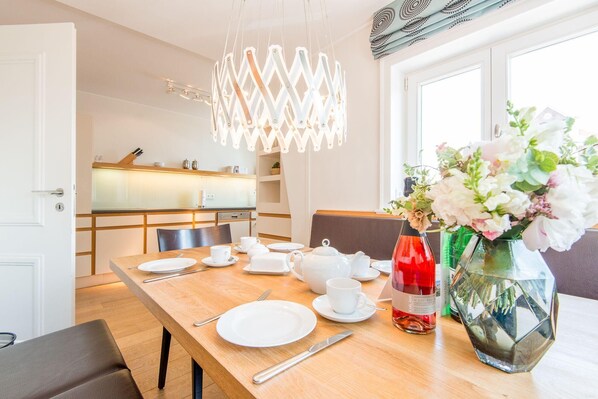 Genießen Sie großzügigen Raum und modernen Komfort in Apartments von 60 m² bis 96 m², die Platz für bis zu vier Personen bieten. Jeder Wohnung ist ein eigener PKW-Stellplatz zugeordnet, und für Ihr Wohlbefinden steht ein gemeinschaftlicher Wellnessbereich mit Sauna zur Verfügung. Starten Sie den Tag entspannt, bevor Sie die nahe gelegene Friedrichstraße mit ihren exklusiven Boutiquen, Cafés und Restaurants erkunden. Mit nur wenigen Schritten sind Sie im lebhaften Zentrum, und auch der Strand ist lediglich 300 Meter entfernt – ideal, um das Rauschen des Meeres und die salzige Brise zu
