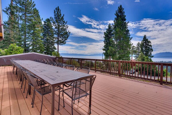 Our family of 16 really enjoyed the location of this house. Close enough to many activities as well as a nice hike right out the door. The views of the lake were amazing, especially in the morning with a cup of coffee. Deck was perfect to host dinners each night. The room accommodations fit our family perfect. Our kids and grandkids loved each of the activities we had made available, such as tram to High Camp of Olympic Village, boat to Emerald Bay, rafting, zip-lining, and Donner Lake for kayaking and swimming.