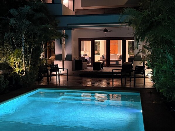 You won't find a better layout for extended families, multiple families or multiple adults traveling together! No need for constant juggling people wanting to do different things and go different places at the same time. You don't need a car to enjoy the neighborhood, beaches, wonderful restaurants and even grab what you need at the local grocery market. Everyone can walk to what they want to do including all the nightlife Tamarindo has to offer! Plus, lots of individual privacy of large private bedrooms balanced by welcoming social spaces for meals, games and connecting.