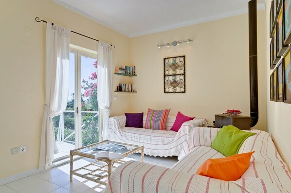 Es gibt Breitband-WiFi-Internet, einen Fernseher und einen DVD-Player (zum Ansehen von Filmen und portugiesischen Kanälen) und einen CD-Player. Auf der Rückseite des Ceu Azul befinden sich das Duschbad, das Doppelzimmer und das Zweibettzimmer, beide klimatisiert (Heizung in den kühleren Monaten). Beide sind hell, farbenfroh und fröhlich dekoriert.