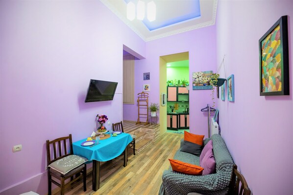In Bezug auf leckeres und gesundes Essen sind unsere Apartments von einer Vielzahl von Restaurants für jeden Geschmack und Geldbeutel umgeben. Fans der vegetarischen Küche werden von einem veganen Restaurant gleich um die Ecke begeistert sein. Für diejenigen, die mehr an traditioneller georgischer Küche interessiert sind, gibt es viele Restaurants und direkt gegenüber haben wir das berühmteste georgische Restaurant Veliaminov - beliebt bei Einheimischen und Touristen, die täglich auf unsere Straße kommen, um die verschiedenen Arten von reinem georgischen Essen zu probieren Geschmack.