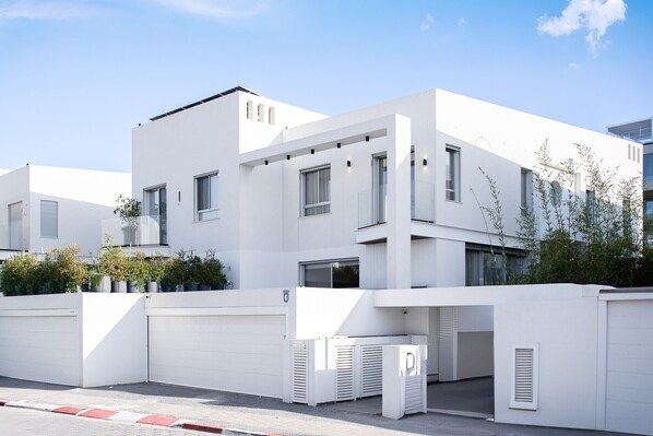 Die Villa befindet sich in einer ruhigen Wohn- und Luxusstraße. Der nächstgelegene Strand ist 10 Gehminuten entfernt sowie die Marina. Die Geschäftszone mit Einkaufszentrum und Restaurants sind ebenfalls in Gehdistanz - 15 Minuten. Die Villa liegt nur 1 km vom Highway entfernt, der Sie in wenigen Minuten in den Norden von Tel Aviv bringt.