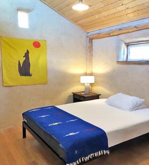 The house has a cozy bedroom with a high quality queen size bed, a full bathroom, open concept living room, dining area, and small kitchen. The living room has a queen size futon for extra bedding. There is also an elevated deck for enjoying mountain views and watching locals and tourists. There is also a charcoal grill for outdoor cooking. Guests need to provide there own charcoal, but there is often some left by prior guests.