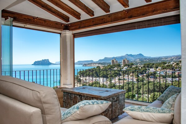 - spektakulärer Meerblick von der Terrasse und den Sofas im Wohnzimmer.