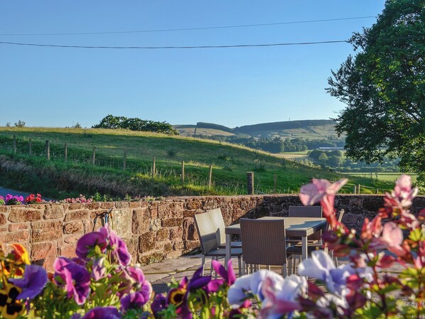 Bathroom: Bath, Cubicle Shower, Heated Towel Rail, Toilet. Biomass central heating, electricity, bed linen, towels, Wi-Fi and logs for wood burner included. Travel cot and highchair available on request. Welcome pack. . Enclosed lawned garden with sitting-out area, garden furniture and BBQ. Bike store. Private parking for 2 cars. No smoking. Please note: There are 2 steps in the garden.. Liftingstane Dairy Cottage (ref UK5878) is an attractive and beautifully presented barn conversion adjoining Liftingstane Cottage.