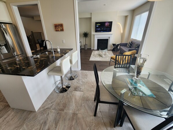This ultra modern newly built clean, cozy, spacious 4 bedroom home comes fully equipped with top of the line amenities to allow you to experience Niagara Falls downtown and surrounding areas . Perfect for families, big and small groups travelling to explore all Niagara falls has to offer for short or long stays. Situated in a great location, quiet neighborhood very close to Niagara Falls but far enough from falls traffic. With plenty of space in the kitchen fully equipped with all amenities and a pull out Futon bed for an extra person makes for an accommodating experience for large groups.