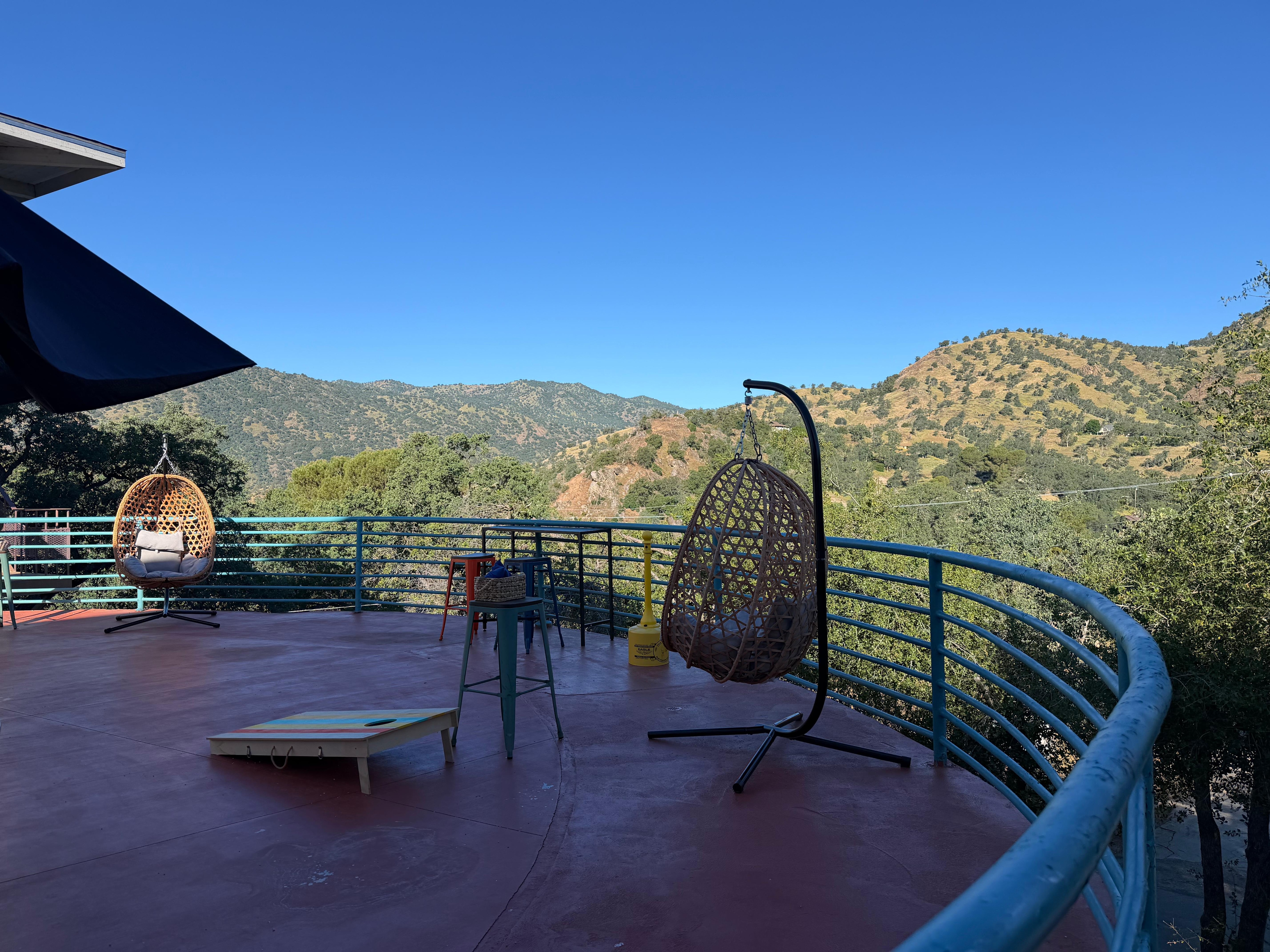 The place was very quaint. It has a hobo calming, relaxing feel to it. The place has a common kitchen, laundry and game room, and has lots of areas where you can hang out and chill. Our room was awesome with a deck overlooking the perfect view of the mountains. We sat out there for coffee in the mornings and a bottle of beer at night. The bed was one of the comfiest weve ever had. The bathroom was clean stacked with shampoo, body soap and conditioner so you dont have to worry about bringing one. It also has a private access to the kaweah river which we headed out to the first day we were there. Its very close to the foothill entrance of Sequioa which was our destination for this trip. Will definitely be staying here again!