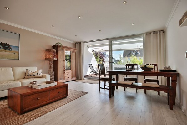 Dieses 2-Zimmer-Appartement befindet sich in der Hochpaterre (über Stufen erreichbar) und ist mit seinen 63m² für 4 Personen ausgestattet.