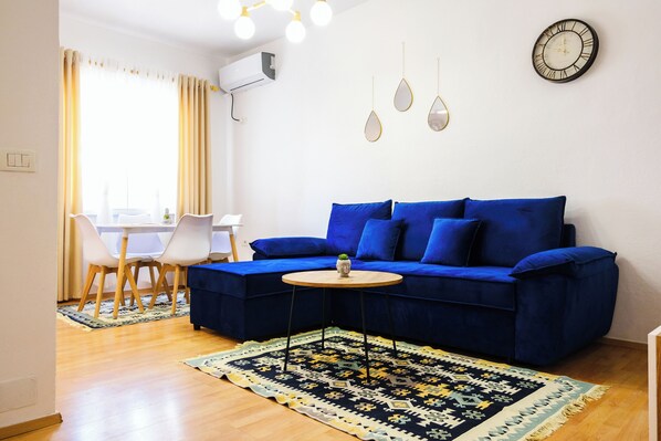 The flat is located just 1 minute walk from the Skanderbeg square.