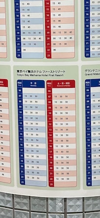 Gültig ab 30. Okt. 2025: Die Preise für 1 Übernachtung für 2 Erwachsene im Tokyo Bay Maihama Hotel First Resort am 10. Nov. 2025 beginnen bei 111,68 € (inklusive Steuern und Gebühren). Dieser Preis basiert auf dem niedrigsten Preis pro Nacht innerhalb der nächsten 30 Tage, der jeweils in den letzten 24 Stunden gefunden wurde. Die Preise können sich ändern. Wähle deine Reisedaten, um genauere Preise zu erhalten.