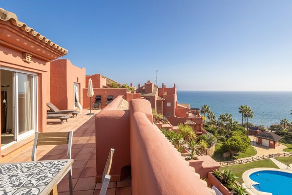 Apartmento en Torrox Costa mit Bergblick, Meerblick, Pool, WLAN, Klimaanlage, Terrasse und Garten