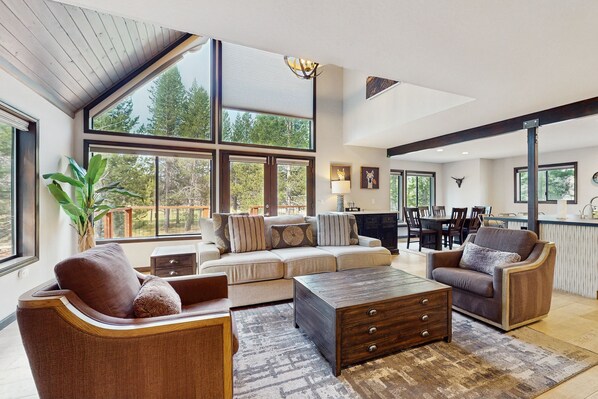 Enjoy fantastic meadow views from almost every room of this open, airy, and updated home. Boasting vaulted ceilings, high-end amenities, and stylish, comfortable furnishings, you and your family or travel group are certain to get plenty of rest and relaxation during your stay. The visiting chefs in your group will adore the stainless steel, island kitchen, while meals (and board games) can be enjoyed at the table for six. Settle into the cozy, sunlit living area and watch a favorite show or movie on the wall-mounted flatscreen TV, or head outside to your back deck to enjoy the view or play in the yard. Guests will also enjoy access to the Trout Creek Recreation Center where you can swim, get in a workout, and soak in the hot tub. And if you want to get out on the water, there is a private dock at the Tahoe Donner Marina where you can also rent a variety of boats and paddleboards.