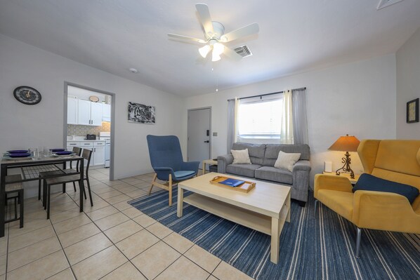 Skip the fees and enjoy the charm located in the heart of Tucson. This 2-bedroom private home gives you the space and comfort you need to de-stress from your day. From our newly renovated kitchen to our serene backyard. Just a few blocks away from the University of Arizona! Whether you're visiting for work, fun, or family. This place is perfect for couples, families, pets, teachers, and friends visiting students. Also, enjoy the nightlife downtown, which is only 5 minutes away!