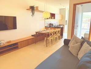 Apt Toninhas 4 min walk to the beach, swimming pool, barbecue and air conditioning