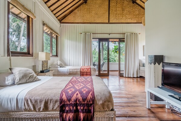 This lovely 2 story home away from home, which sleeps 4, has 2 AC bedrooms with overhead fans. Each bedroom has a lovely verandah perched over the river gorge and tranquil jungle views.