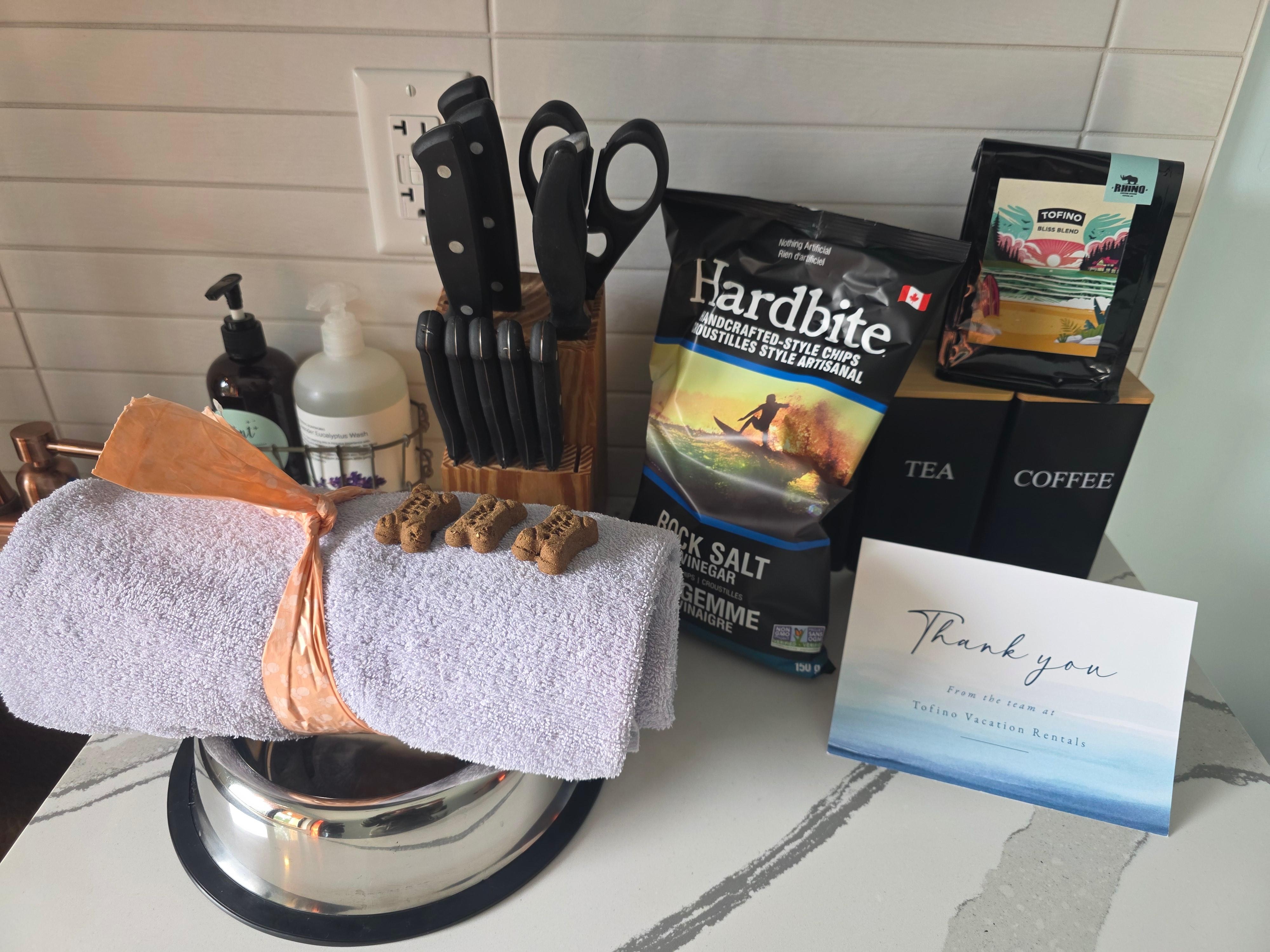 Complimentary small starter package of locally ground coffee provided.
