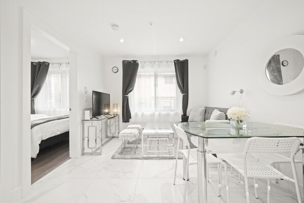 As you step into our bright and modern living space, you’ll be greeted by the open-concept layout seamlessly connects the cozy living room, modern kitchen, and a dining area where you can enjoy home-cooked meals.
