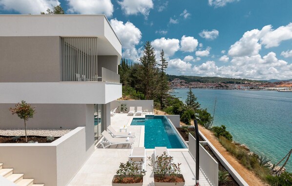 Treten Sie am Morgen auf die Terrasse, die sich harmonisch zum Meer öffnet, und tauchen in den erfrischenden Pool. Frühstücken Sie auf dem Balkon, entspannen Sie sich auf den Sonnenliegen mit einem leichten Getränk und lassen Sie den Tag bei einem stimmungsvollen Abendessen mit Familie oder Freunden unterm Sternenhimmel ausklingen.