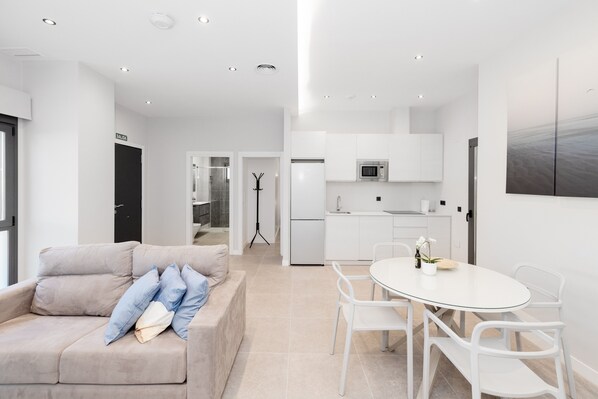 Apartments mit 1 oder 2 Schlafzimmern, Zugangscode, Klimaanlage, ausgestatteter Küche, Einbauschränken, barrierefreien Bädern, Bettwäsche, Handtüchern, TV und hellem Wohnzimmer.