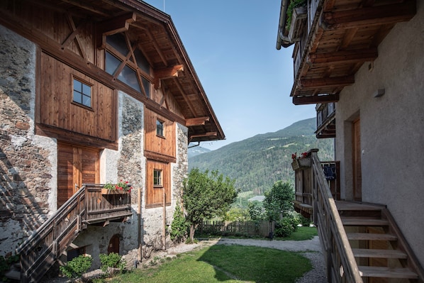 Im Schrotthof in Feldthurns genießen Sie gemeinschaftliche Außenbereiche wie Garten, offene Terrasse und Spielplatz. Kinder können mit den vorhandenen Spielzeugen und Büchern spielen. Für Ihren Komfort stehen Ski- und Fahrradabstellräume zur Verfügung.