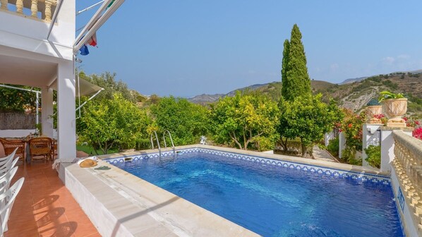 Beautiful house with pool, patio and barbecue.
