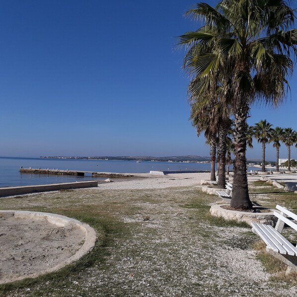 Vermietet werden zwei Drei-Sterne Apartments von holiday-vir. Ein großes Apartment mit Terrasse und Blick aufs Meer sowie auf die Berge und ein Studio-Apartment mit Balkon. Beide Ferienwohnungen befinden sich im 1.Stock des renovierten Apartment-Hauses. Das Ferienhaus ist ca. 100 m vom Strand/Meer entfernt. Es gibt einen Außen-Grill und Parkplätze am Haus um entspannt den Urlaub zu genießen.
