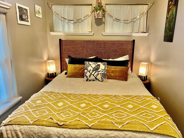 The town of Volcano rains often and gets cold at night. The Volcano area gets over 120 inches of rain annually and temperatures during winter can get below 50 degrees. We recommend bringing a rain jacket, long pants, and warm socks. We have two small umbrellas available for guests to use. When it's raining, the house may get musty, despite our best efforts. We do provide a dehumidifier, ceiling fans, and a heater that work very well to keep our cottage fresh and moisture low.