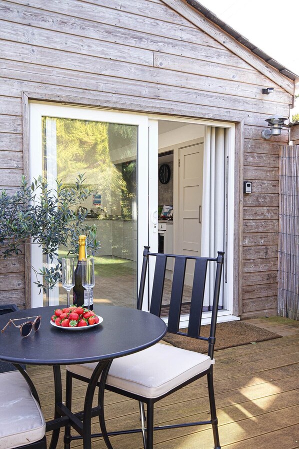 Ideally situated on the road between the famous Cornish sailing destination Rock and the popular family and surfing beach at Polzeath, is Lowen Lodge, a gorgeous property for two. Aside from being just a very short drive to Polzeath and Rock, thanks to the superbly convenient location Lowen Lodge occupies, other popular places to visit equally easy to reach include the famous fishing village of Port Isaac next to neighbouring hamlets of Port Gaverne and Port Quinn. These wonderful places offer up a wealth of coastal walks and are perfect for the four legged member of the family too. Tintagel and Boscastle are within half hours drive and taking the passenger ferry from Rock across to the world famous harbour town of Padstow, is a breeze and a definite must do! A selection of independent shops, cafes, pubs and restaurants are dotted around the Rock, Polzeath and St Minver areas with the bustling town of Wadebridge just 5 miles away.  Wadebridge offers all of the above plus a terrific leisure centre, two screen cinema and access of course to the well-loved Camel bicycle trail. Once you have parked up, a sliding patio door leads you into this perfectly presented, ground floor, modern property. The open plan living, dining and kitchen is spacious and comfortable. A wood burner further adds to the comfort levels making this property the perfect choice for a romantic winter escape.  Comfy easy seating set around the wood burner and television combined with a smart dining table with chairs completed the open plan living space. The well-equipped kitchen includes electric oven, gas hob, fridge with a freezer compartment, slimline dishwasher, microwave, washing machine and separate tumble dryer. The spacious bedroom with super king size bed which can be made as a twin bed arrangement also, is lovely. The owners have considered everything and provide lovely extra touches such as a fan for those warmer Cornish evenings, long and short mirrors, hairdryer and even a luggage rack! Off the bedroom is a super-size bathroom WC with bath (and handheld shower attachment), a large, separate shower cubicle, wash hand basin and heated towel rail. This property is efficiently heated by electric radiators throughout. Private parking for 1 car provided The enclosed garden is laid mainly to lawn with a good size decked area in front of the property. Sun loungers and table and chairs are provided.   Please note- - This property welcomes 2 small or medium dogs or 1 large - Cot and highchair not available