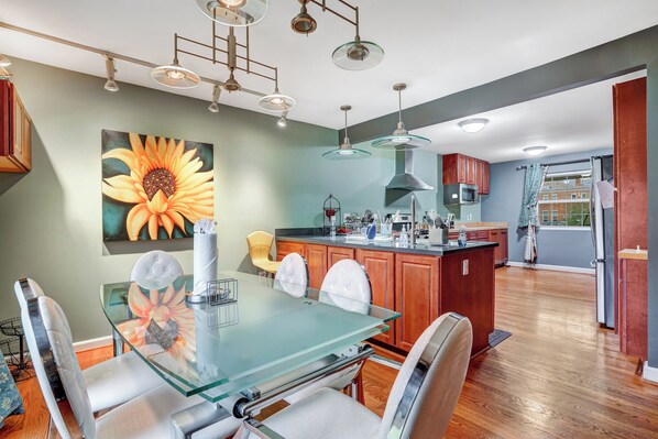 Just three miles from Washington DC and Walking distance from METRO, Crystal City House is a 5-bedroom, 3-bath home in Arlington’s upscale Crystal City neighborhood. Just HALF a BLOCK from the DOWNTOWN strip, enjoy easy access to nightlife, 24-hour restaurants, grocery stores, and the Crystal City Underground Mall. Surrounded by tree-lined streets and parks, the home is minutes from the METRO, VRE Rail, and Reagan National Airport making it a perfect base for your stay.