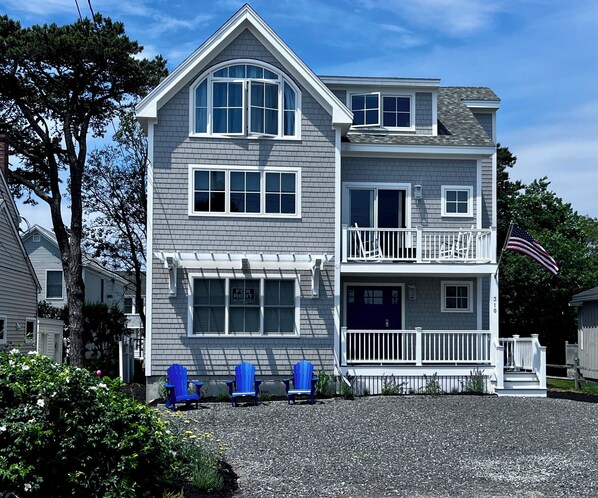 -The front deck offers unobstructed ocean views, with plenty of seating for guests to enjoy the beautiful surroundings. Whether you're sipping a morning coffee or evening cocktail, you’ll be treated to one of the best spots to watch the action on Moody Beach below.