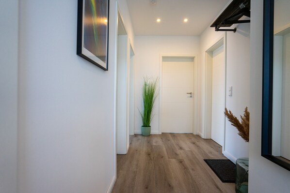 Das Apartment Gezeiten ist sehr hochwertig ausgestattet und verfügt in jedem Zimmer über eine Fußbodenheizung und einen allergikerfreundlichen Vinylboden. Zu der gehobenen Ausstattung zählen unter anderem Annehmlichkeiten wie Power WLAN, 2x SmartTV's und eine energetische Bauweise (KfW 55). Es erwartet Sie ein geräumiges und helles Wohnzimmer mit angrenzendem Balkon, auf dem Sie nach einem aufregenden Tag mit Blick in die Natur den Abend ausklingen lassen können.