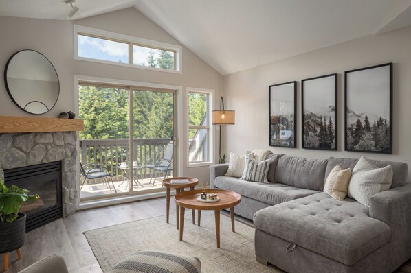 - Cozy gas fireplace (available fall/winter/spring)