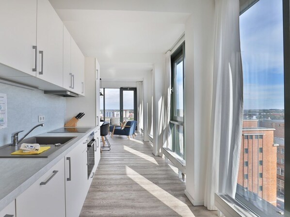 Hier residieren Sie ganz oben in der 9. und 10. Etage in einem der exklusivsten Gebäude am Wismarer Hafen. Das geschmackvoll eingerichtete 3- Zimmer-Appartement ist über den Lift leicht zu erreichen. Hier können bis zu 6 Personen auf 115 m² einen traumhaften Urlaub verbringen.