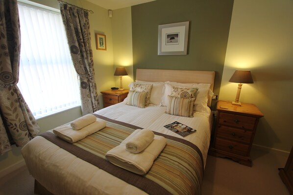 Apartment im Stadtzentrum mit einem Schlafzimmer und Kingsize-Bett in einer modernen, sicheren Wohnanlage mit sicherem Parkplatz für ein Auto innerhalb der historischen Stadtmauer. 10 Minuten zu Fuß vom Bahnhof York entfernt und ein kurzer Spaziergang über den Fluss bringt Sie in die Innenstadt, nur wenige Minuten von allem entfernt, was York zu bieten hat. Die Wohnung befindet sich im Erdgeschoss, aber in erhöhter Position vorne und es gibt Gemeinschaftsgärten auf der Rückseite. Die Lounge verfügt über französische Türen, die auf einen Juliet-Balkon führen. Zimmer: Flur mit großem begehbarem Schrank, Lounge mit Massivholzmöbeln und Flachbildfernseher, DVD-Player, iPod-Dockingstation und einer Auswahl an CDs und DVDs, kostenloses, unbegrenztes WLAN. Esstisch aus massiver Eiche mit Platz für vier Personen. Küchenbereich mit Geschirrspüler und Waschmaschine. Schlafzimmer mit Kingsize-Bett und Kiefernholzmöbeln, Radiowecker und Fön. Badezimmer mit Dusche über der Badewanne und beheiztem Handtuchhalter. Für die kühleren Monate ist eine elektrische Heizung vorhanden. Kostenlose Toilettenartikel und Taschentücher werden bei der Ankunft bereitgestellt. Das Parken für ein Auto ist auf einem zugewiesenen Platz innerhalb des Komplexes gestattet.
