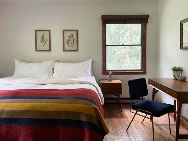 King bedroom with desk + closet