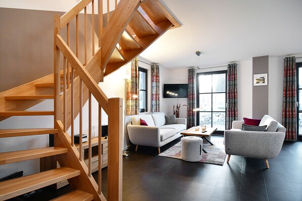 Der großzügig kombinierte Wohn- und Essbereich führt Sie direkt zur Terrasse mit Süd-/Westlage, auf der Sie die Sonnenstunden Usedoms genießen können.