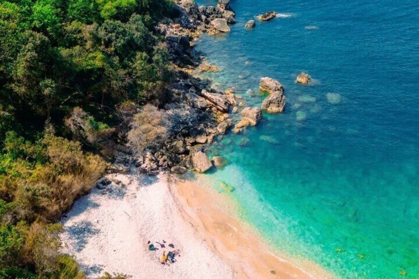 Von Ada Bojana:Langer Strand, kleiner Strand (Ulcinj) , Valdanos und Kristallstrand (Schwimmen)