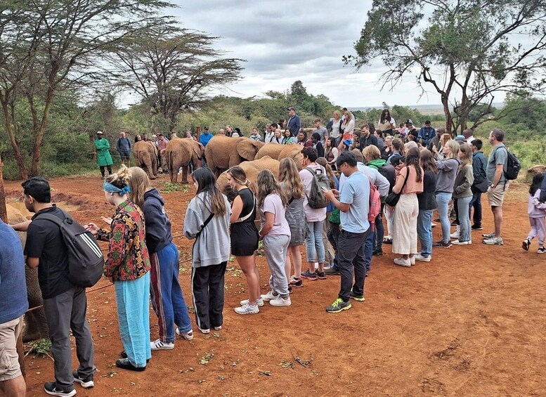Später geht es weiter zum David Sheldrick Elefantenwaisenhaus, das in einem abgelegenen Teil des Nairobi Nationalparks liegt. Hier werden verwaiste Elefantenbabys und andere Tiere von einem engagierten Team von Naturschützern betreut. Das Elefantenwaisenhaus ist eine Stunde am Tag für die Öffentlichkeit zugänglich. Es wird von Daphne Sheldrick geleitet, der Frau des verstorbenen berühmten Naturforschers David William Sheldrick.