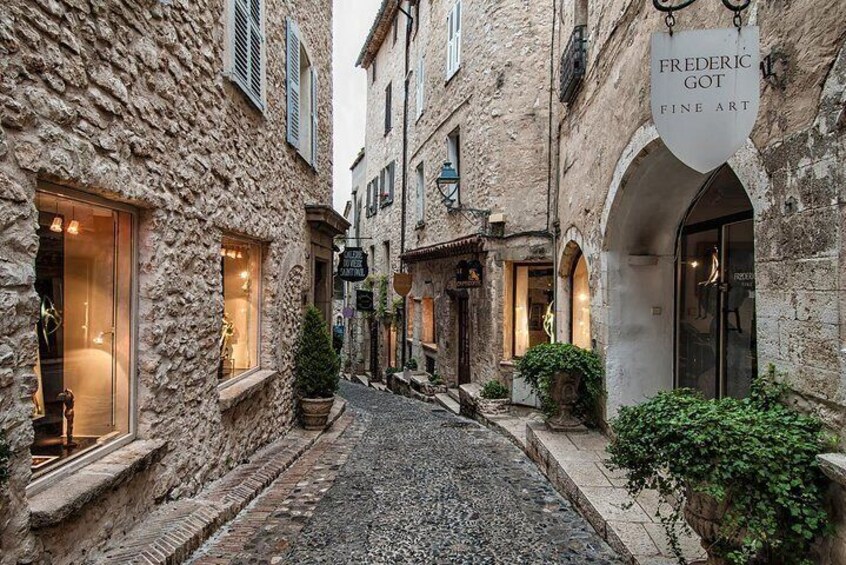 Die Tour endet in St. Paul de Vence, einem der schönsten mittelalterlichen Dörfer der französischen Riviera. Kunstgalerien lassen Sie in die Vergangenheit eintauchen. St. Paul de Vence ist die Wiege der Künstler, Schriftsteller, Dichter (Prévert, Pagnol) und Maler (Chagall, Picasso, Matisse).