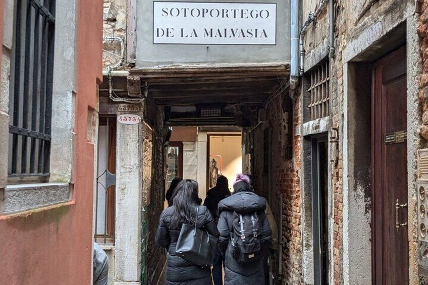 Beginnen Sie die Tour und entdecken Sie die Schönheit dieses Platzes, die Gebäude und ihre Verbindung mit Liebe und Lust während der Wiedereinstiegszeit in Venedig