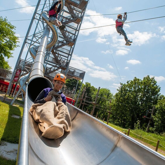 Schwebe auf zwei Ziplines durch die Luft