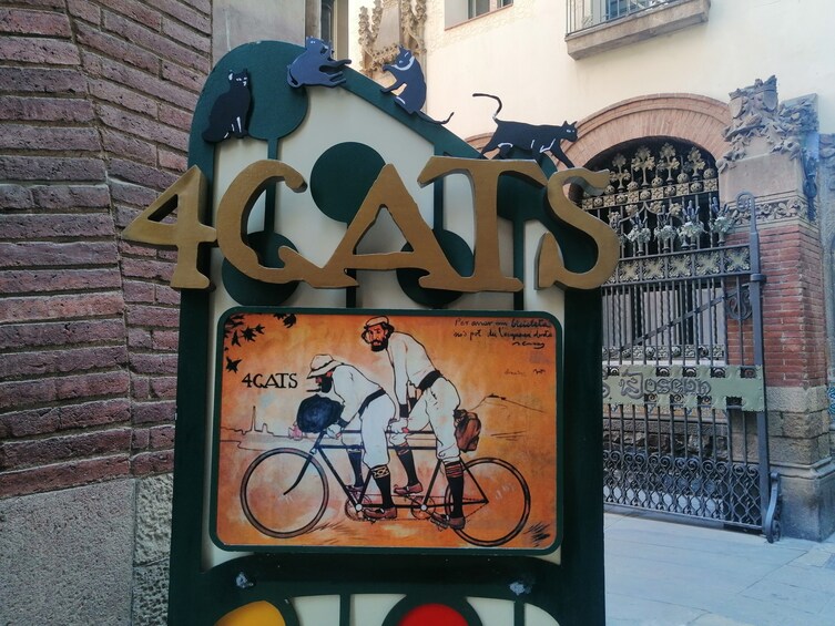 Cominceremo il tour davanti il magnifico edificio modernista che ospita l'emblematica taverna (oggi un ristorante) Els quatre gats. In diesem Ort, der schon bald zu einem Treffpunkt für Künstler wurde, schuf Picasso seine ersten Werke.