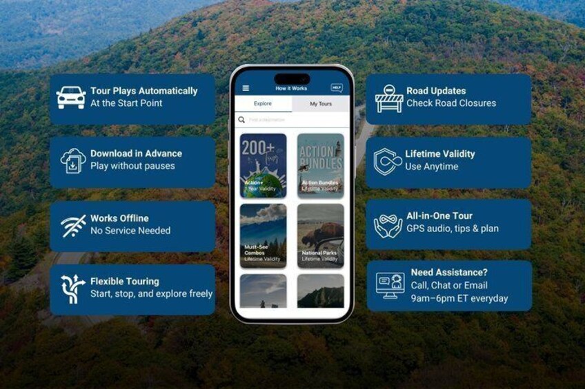 - Sorgenfrei reisen: Nutzen Sie die Tour-App jederzeit, an jedem Tag und über mehrere Tage hinweg. Beginnen und pausieren Sie die Tour, wann immer Sie möchten, machen Sie Pausen und erkunden Sie Ausflüge in Ihrem eigenen Tempo. Überspringen Sie alles, was Sie nicht interessiert, oder entdecken Sie Bonusinhalte für alles, was Sie interessiert