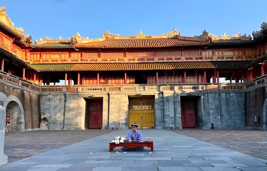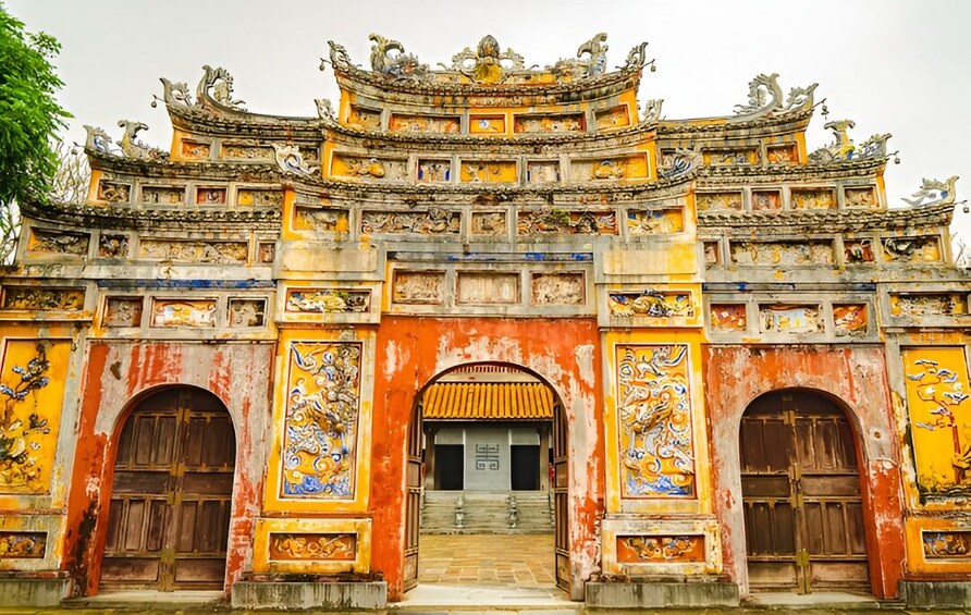 - 08:00 - Triff deinen Reiseleiter in deinem Hotel oder am Treffpunkt im Stadtzentrum von Hue. Beginne deine Radtour zur Kaiserstadt (Zitadelle), der Heimat der Nguyen-Dynastie (1802-1945), mit Highlights wie dem Ngo Mon Tor, dem Thai Hoa Palast und den Neun Dynastischen Urnen.